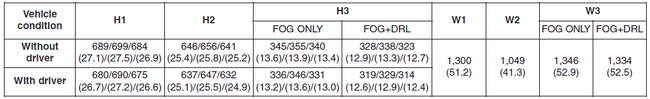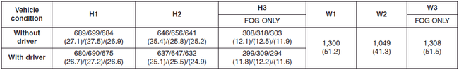 H3 : Высота между центром лампы противотуманной фары и землей.