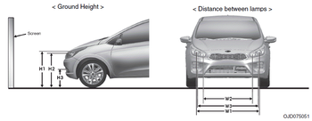H1 : Высота между центром лампы фары и землей (ближний свет)