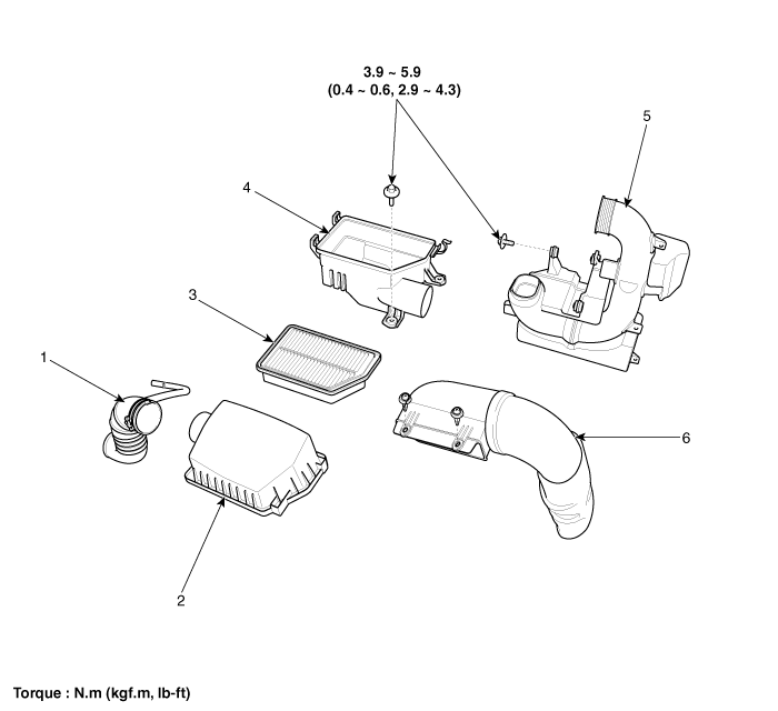 2. Крышка воздухоочистителя 3. Фильтр воздухоочистителя |