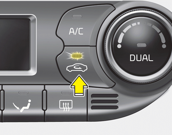 Используется для выбора внешнего (свежего) положение воздуха или положение рециркуляции воздуха. Чтобы изменить положение регулятора забора воздуха, нажать кнопку управления.