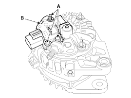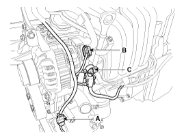 (B) и отсоедините кабель от клеммы «B» генератора (C).