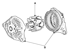 Отсоедините ротор (А) и кронштейн (В).