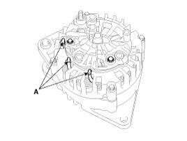 Отпаяйте 3 провода статора (A).