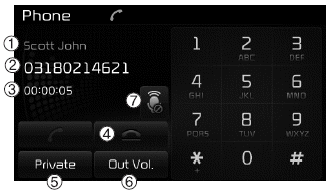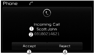 Ответ на вызов с помощью Bluetooth® Устройство беспроводной технологии подключено отобразит следующий экран.