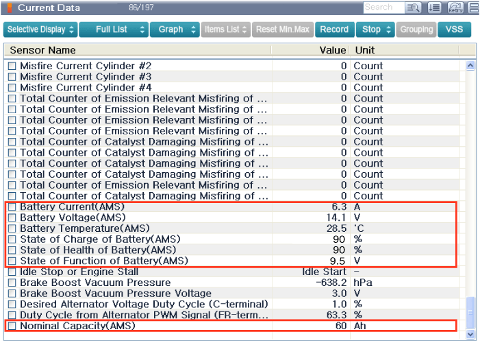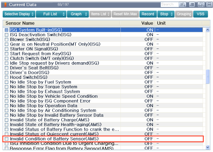 батареи (AMS) = (0~12 В)". [Только для системы ISG]