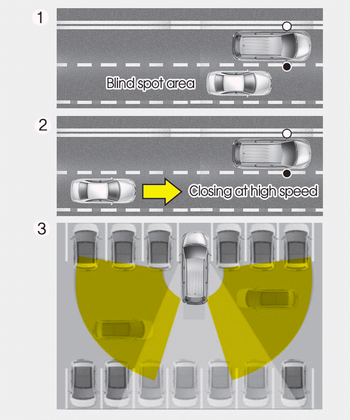 Система обнаружения слепых зон (BSD) использует радарные датчики в заднем бампере для отслеживать и предупреждать водителя о приближающийся автомобиль в водительской шторке площадь пятна.