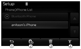Эта функция используется для просмотра мобильных телефоны, которые были сопряжены с аудиосистема. При выборе сопряженного телефона, отображается меню настройки.