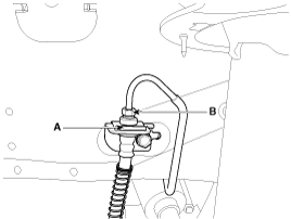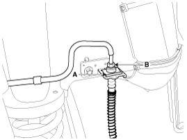 Отсоедините тормозную трубку, ослабив накидную гайку трубки (В).