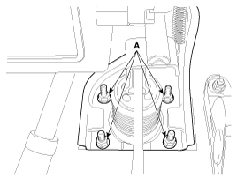 Надежно установите усилитель тормозов и крепежные гайки педали тормоза (А).