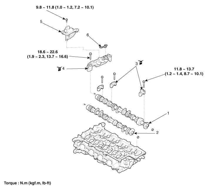 2. Впускной распредвал 3. Крышка подшипника распредвала 4. Крышка переднего подшипника распределительного вала. |