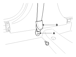 Снимите нижнюю крышку крепления переднего ремня безопасности (В).