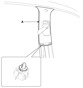 Снимите верхнюю крышку крепления переднего ремня безопасности (А).