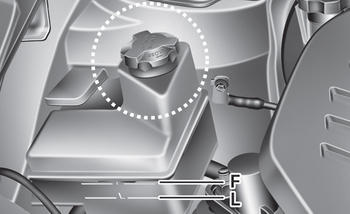 Если уровень охлаждающей жидкости низкий, добавьте достаточно дистиллированная (деионизированная) вода. Принесите уровень до F (MAX), но не переполняйте. Если часто требуется долив охлаждающей жидкости, мы рекомендуем чтобы система была проверена специалистом официальный дилер Киа.