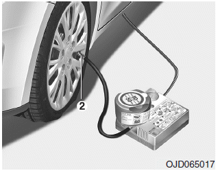 Использование TMK может быть неэффективным при повреждении шины более примерно 4 мм (0,16 дюйма). Мы рекомендуем вам обращаться авторизованного дилера Киа, если шину нельзя сделать пригодной для эксплуатации с комплектом для перемещения шин.