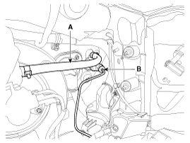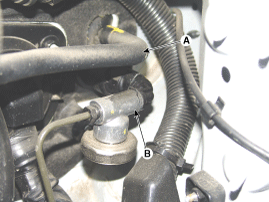 Отсоедините трубку сцепления (В) и шланг бачка (А) от сцепления.