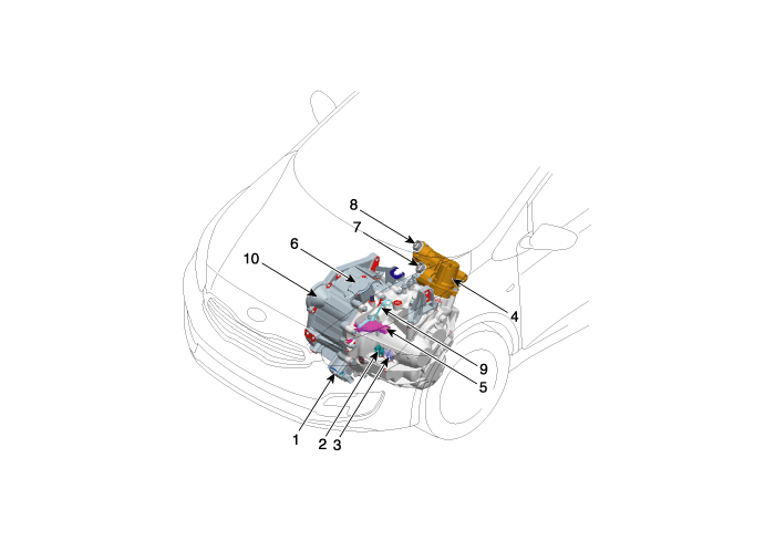 7. Выберите двигатель 8. Переключение двигателя 9. Рычаг ручного управления 10. Трансмиссия с двойным сцеплением (DCT) |