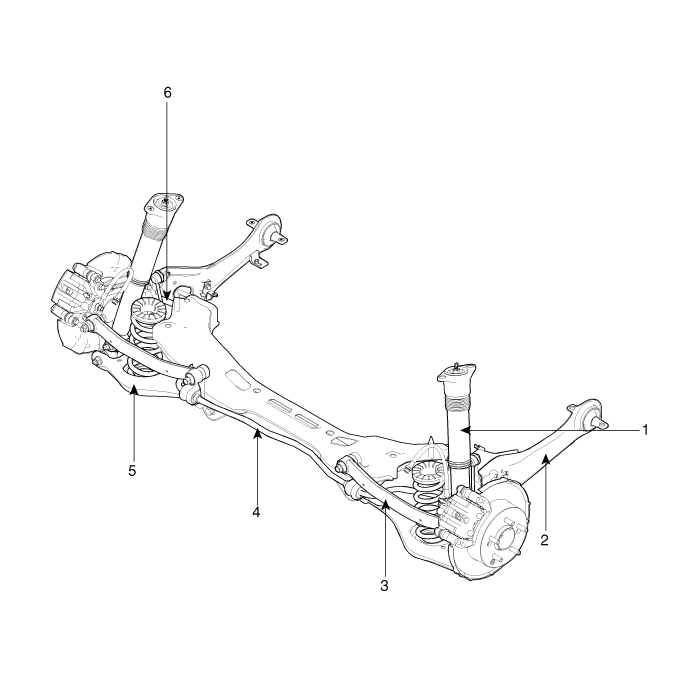 5. Задний нижний рычаг 6. Задний вспомогательный рычаг |