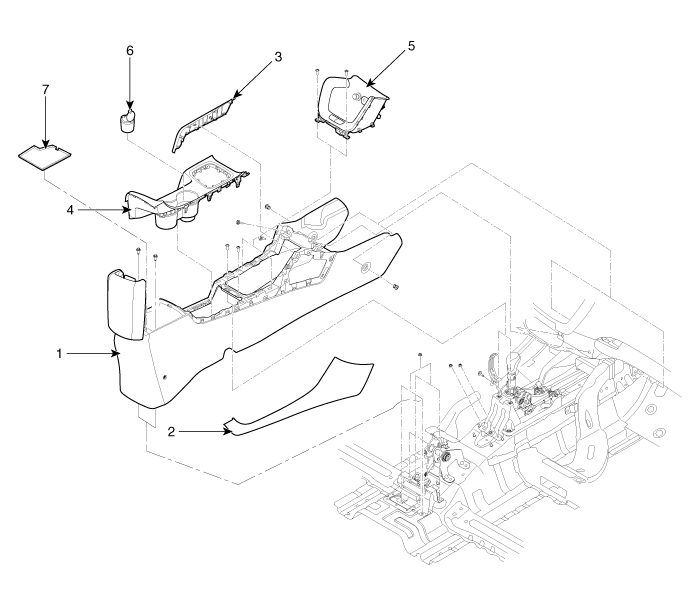 2. Отделка консоли [RH] 3. Консольный гарнир [левый] 4. Верхняя крышка консоли |