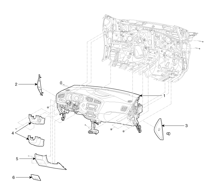 2. Фотодатчик 3. Многофункциональная лицевая панель 4. Боковое сопло [LH] 5. Решетка бокового динамика [LH] 6. Боковая форсунка [RH] 7. Решетка бокового динамика [правая] 8. Боковой воздуховод [LH] 9. Боковой воздуховод [RH] 10. Украшение Crash pad [LH] 11. Кластерная панель верхней панели 12. Комбинация приборов в сборе |