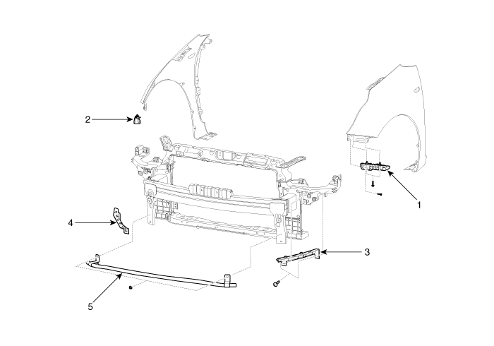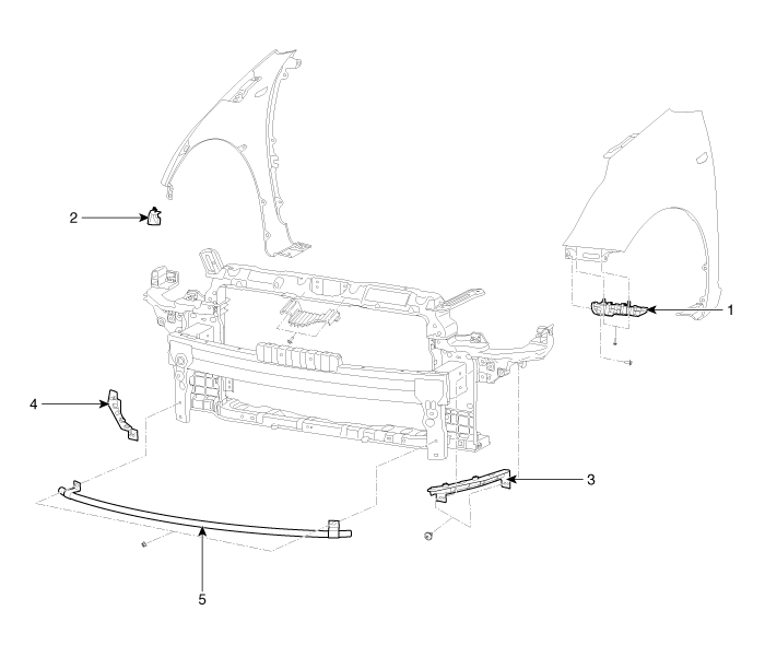 2. Боковая скоба переднего бампера [правая] 3. Верхний кронштейн переднего бампера [левый] |