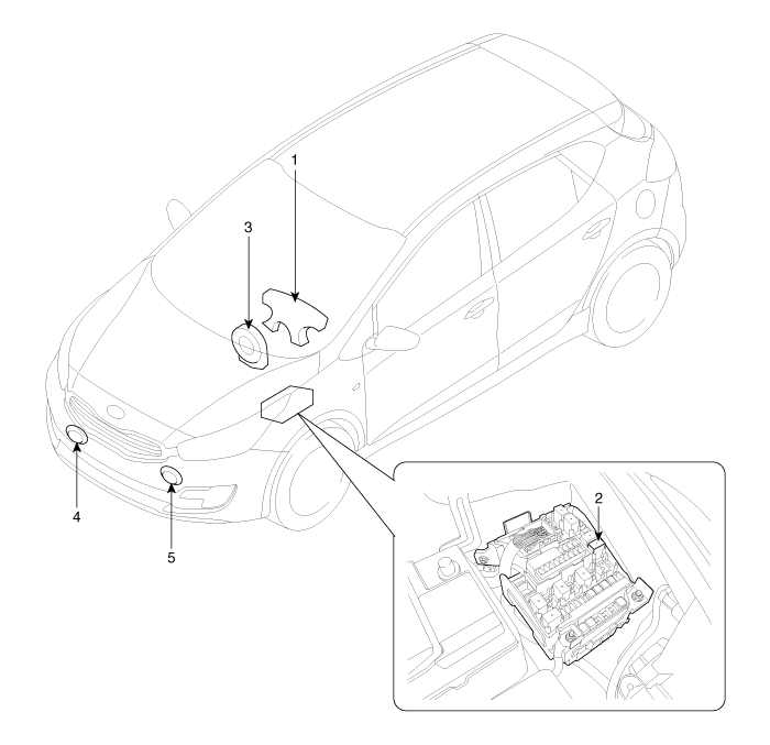 2. Реле звукового сигнала (моторный отсек) 3. Часовая пружина |