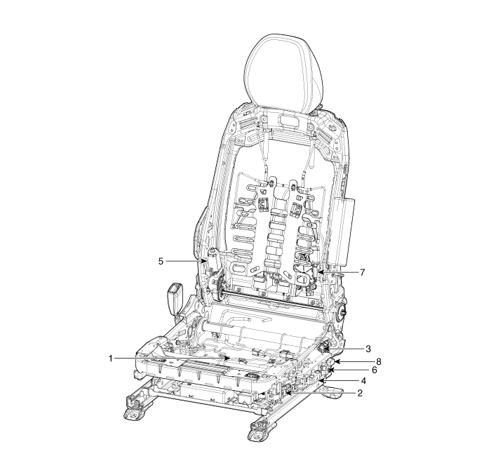 2. Двигатель передней высоты 3. Двигатель задней высоты 4. Переключатель управления сиденьем с электроприводом |