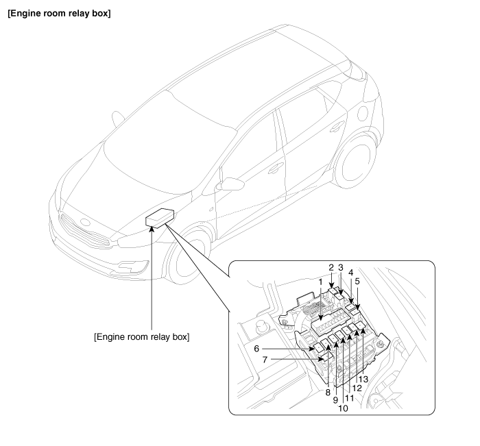 7. Реле HAC 8. Реле SSB4(IG2) 9. Реле переднего стеклоочистителя 10. Реле SSB3(IG1) |
