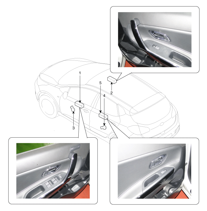 2. Переключатель стеклоподъемника пассажира 3. Мотор переднего стеклоподъемника |