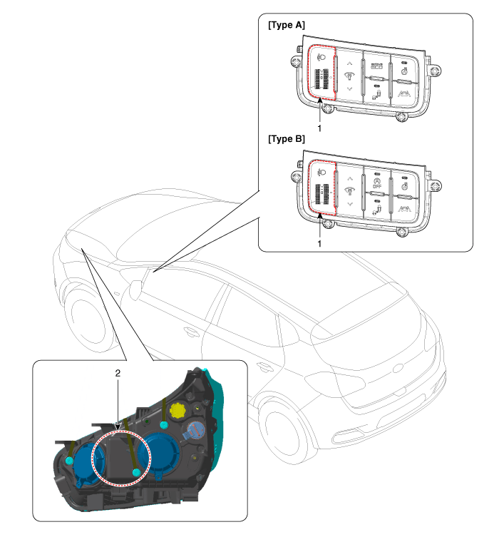Руководство по обслуживанию Kia Cee'd JD: Процедуры ремонта привода зеркал с электроприводом
