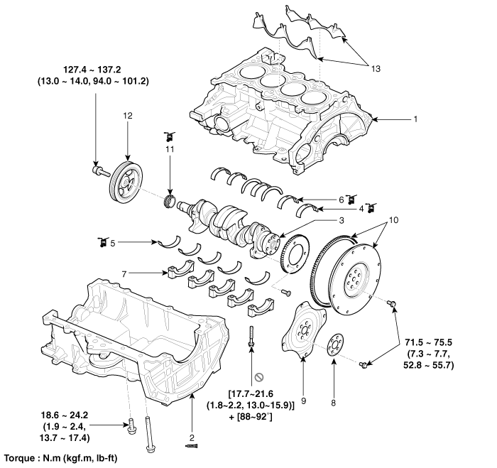 10. Маховик 11. Звездочка коленчатого вала 12. Шкив коленчатого вала 13. Вставка водяной рубашки |