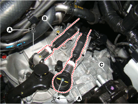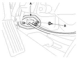 Снимите трос переключения передач (В), предварительно сняв зажим (А).