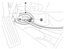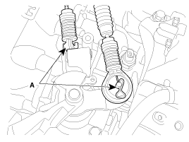 Снимите трос выбора (А) с рычага переключения передач после снятия