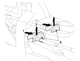 Снимите узел нижнего переключателя аварийной подушки (А)...