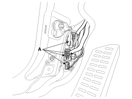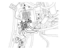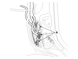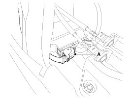 Отсоедините разъемы (А) модуля управления подушками безопасности (SRSCM).