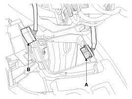 Отсоедините диагностический разъем (А) и разъем нижнего переключателя аварийной подушки.
