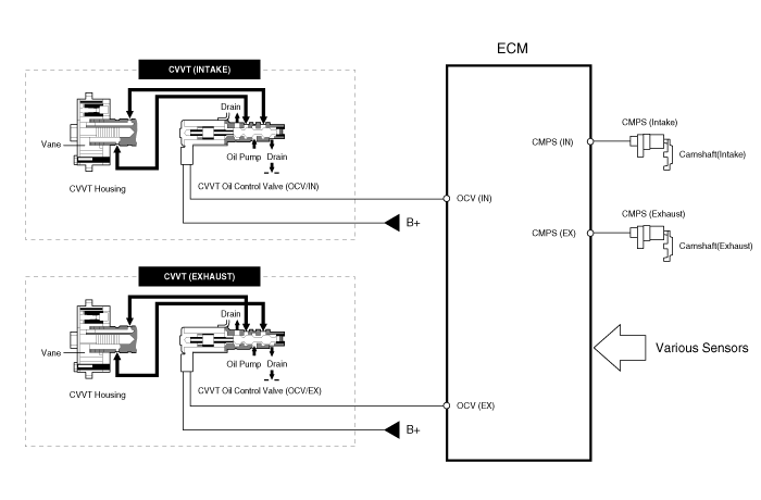 Клапан управления маслом CVVT (OCV), который подает моторное масло в