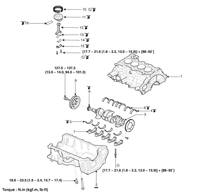12. Шатун 13. Верхний подшипник шатуна 14. Нижний подшипник шатуна 15. Крышка шатунного подшипника |