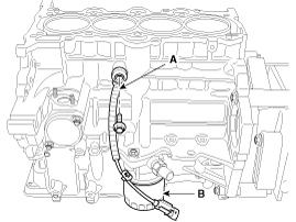 Снимите датчик детонации (А) и масляный фильтр (В).