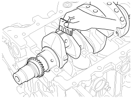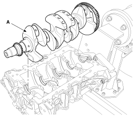 Поднимите коленчатый вал (А) из двигателя, стараясь не повредить