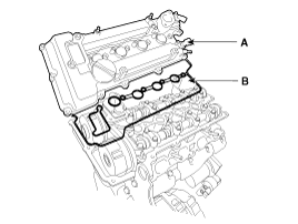 Установите крышку головки блока цилиндров (А) с новой прокладкой (В).