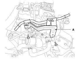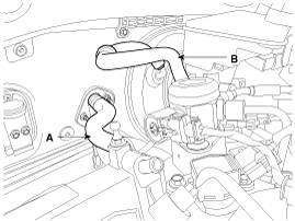 Подсоедините вакуумный шланг усилителя тормозов (А) и шланг отопителя (В).
