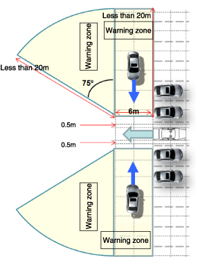 Предупреждение о перекрестном движении сзади (RCTA): генерирует сигнал тревоги для автомобиля.