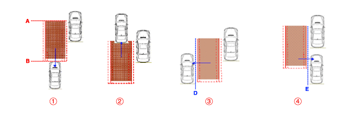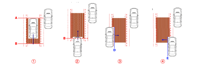 ④ Вся часть целевого транспортного средства пересекает линию E и гистерезис