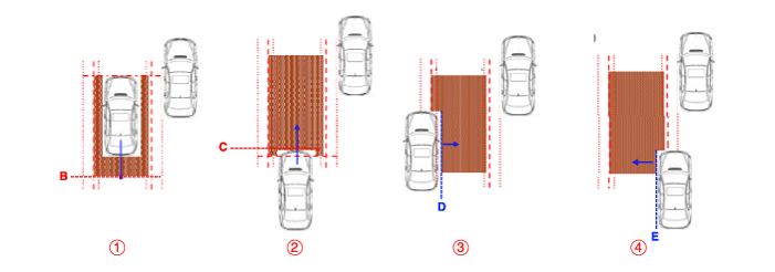 ② Весь кузов целевого автомобиля перемещается за линию B.