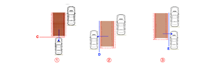② Весь кузов целевого транспортного средства пересекает линию C.