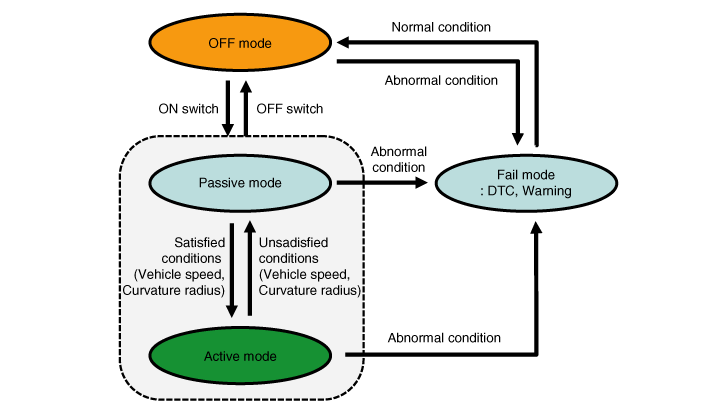Если операции BSD и LCA работают нормально в режиме Fail, включается режим OFF.