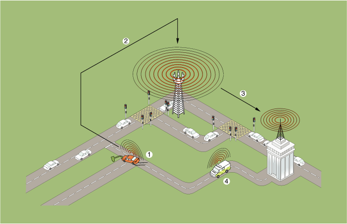 Когда происходит авария или обнаруживается запрос пользователя, он уведомляет о вызове