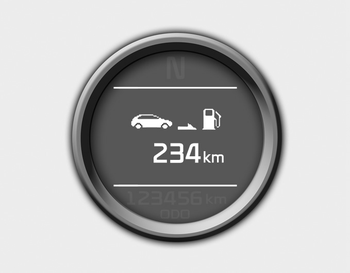 Этот режим показывает расчетное расстояние автомобилем можно управлять с остаток топлива. Когда оставшееся расстояние менее 50 км (30 миль), «---» будет отображаться.