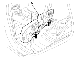 С помощью отвертки или съемника снимите накладку передней двери (А).