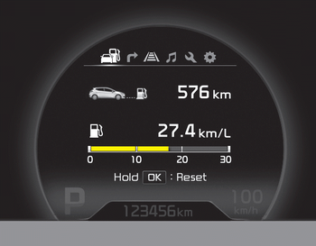 Чтобы очистить средний расход топлива до ноль (--.-), выполните следующие действия;